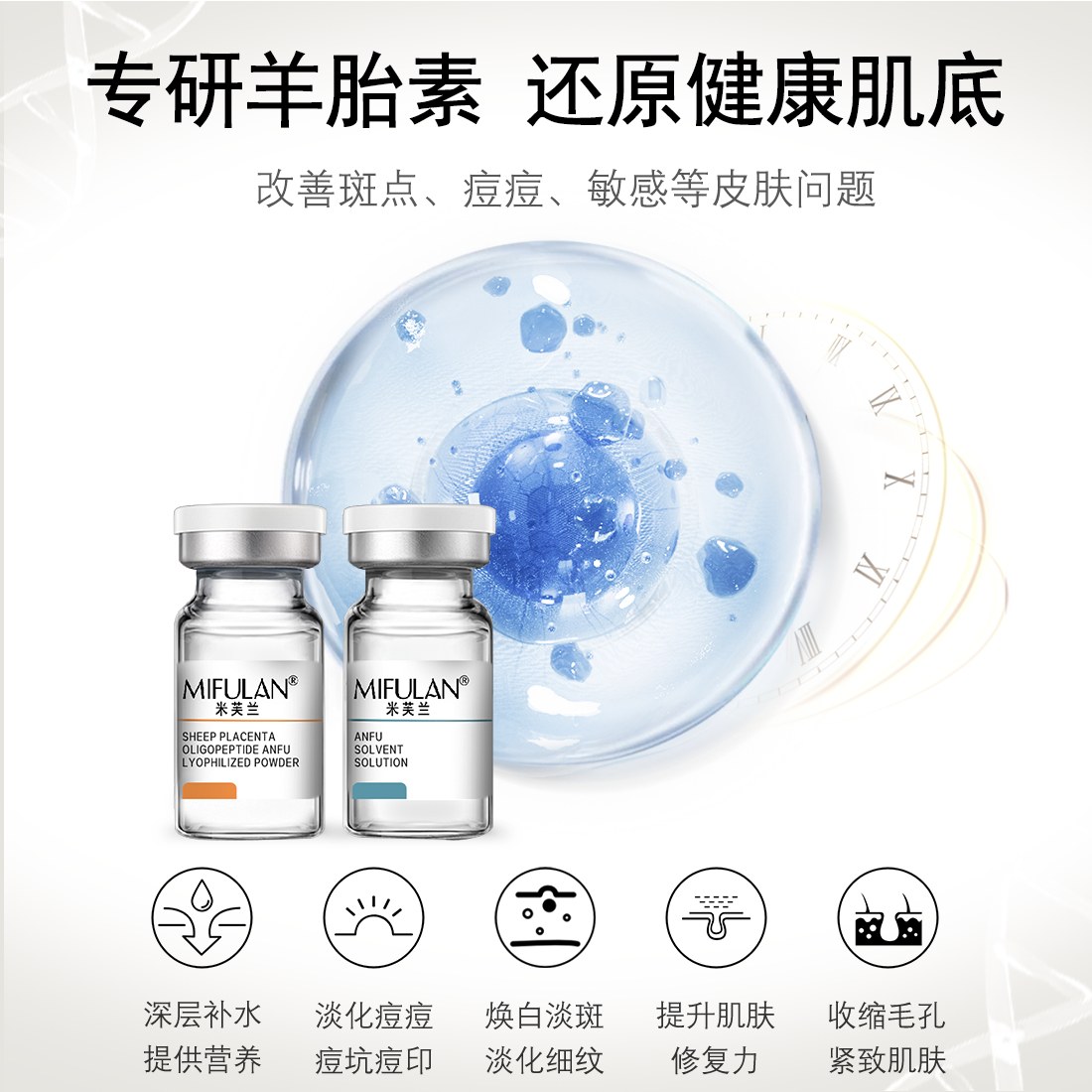 4、淡化瑕疵:修护肌肤的同时不段的给皮肤注入养分和水分,是皮肤充盈饱满有弹性,靠别干瘪肌肤问题