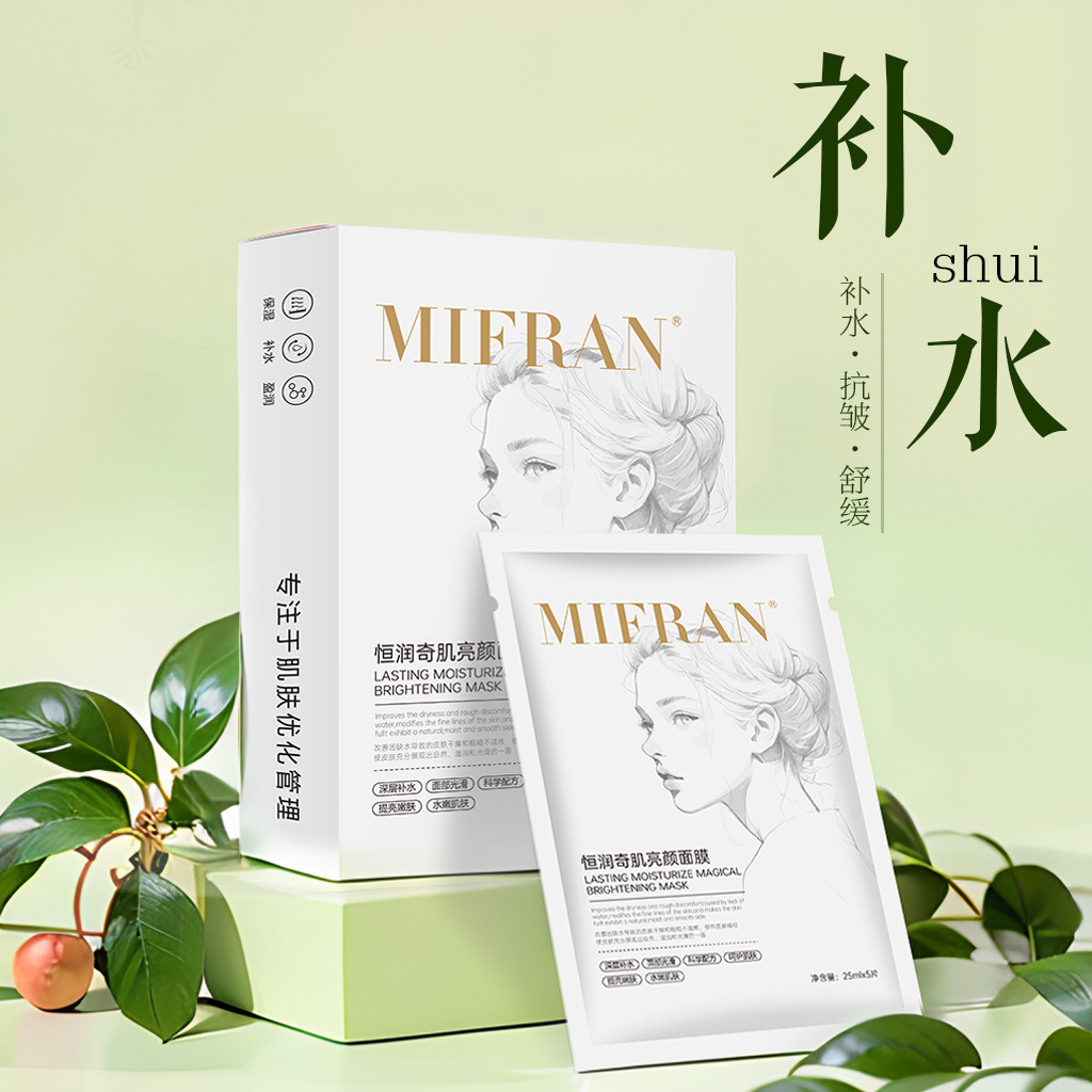 轻盈舒适天丝膜材与横纹拉丝工艺搭配透明质酸钠补水配方,深入肌底,浸润肌肤。呵护肌肤,缓解干燥引起的干纹细纹,令肌肤充分展现自然水润弹滑一面。